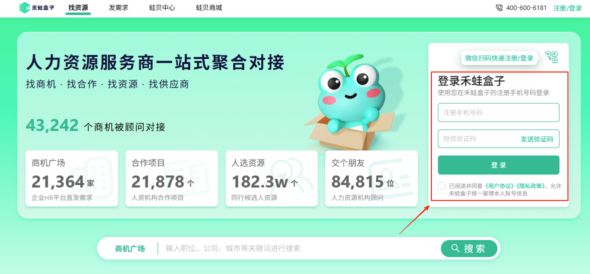 禾蛙盒子(Geebox)是禾蛙平台一个找商机的模块,区别于禾蛙的是,作为一站式人力资源服务商聚合对接平台,盒子主要以信息对接为主,无线上现金流交易。