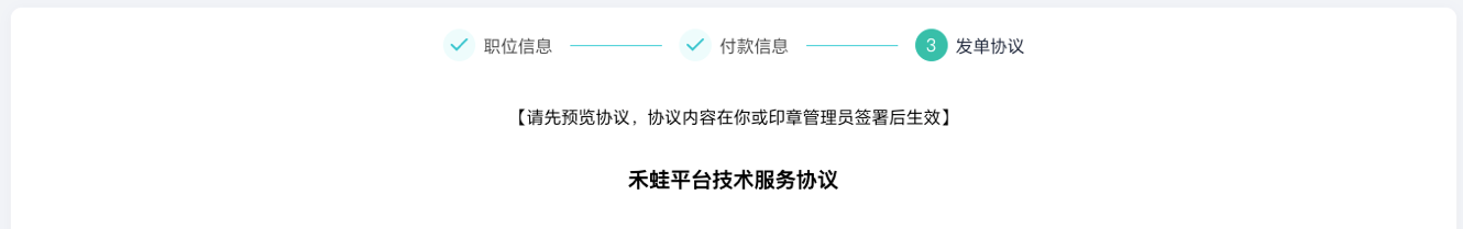 5)发布职位需签署技术服务协议,可在当前页面预览协议内容,点击确认签署并发布,即可发单成功;